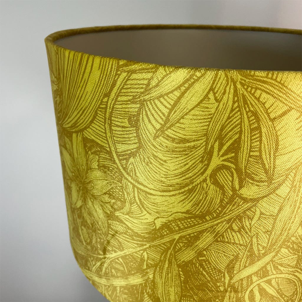 A sophisticated fusion of bold illustration and refined form, this lighting piece pairs the Marin Black Wood Tall Neck Table Lamp with a vibrant velvet lampshade from the Timorous Beasties x Panaz capsule collection. The lamp’s slender, hand-finished mango wood base in matte black provides a clean, monochrome silhouette—perfect for modern interiors. The richly coloured velvet lampshade features Timorous Beasties' iconic botanical illustrations, adding a touch of creativity and depth. Lined with a champagne backing, the shade maintains the integrity of the design when lit or unlit, creating a warm, ambient effect while showcasing every detail of the intricate pattern.