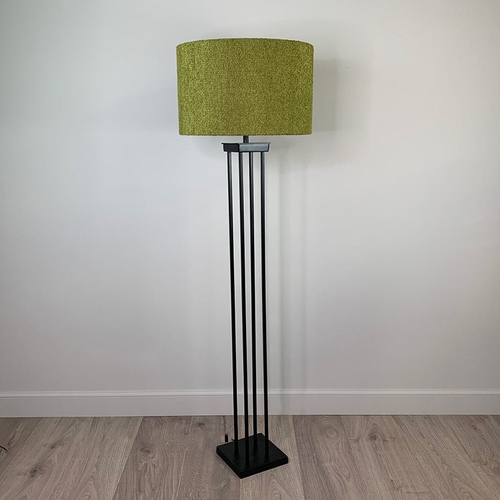 Matt Black Metal Four Post Floor Lamp with Citron Boucle Shade