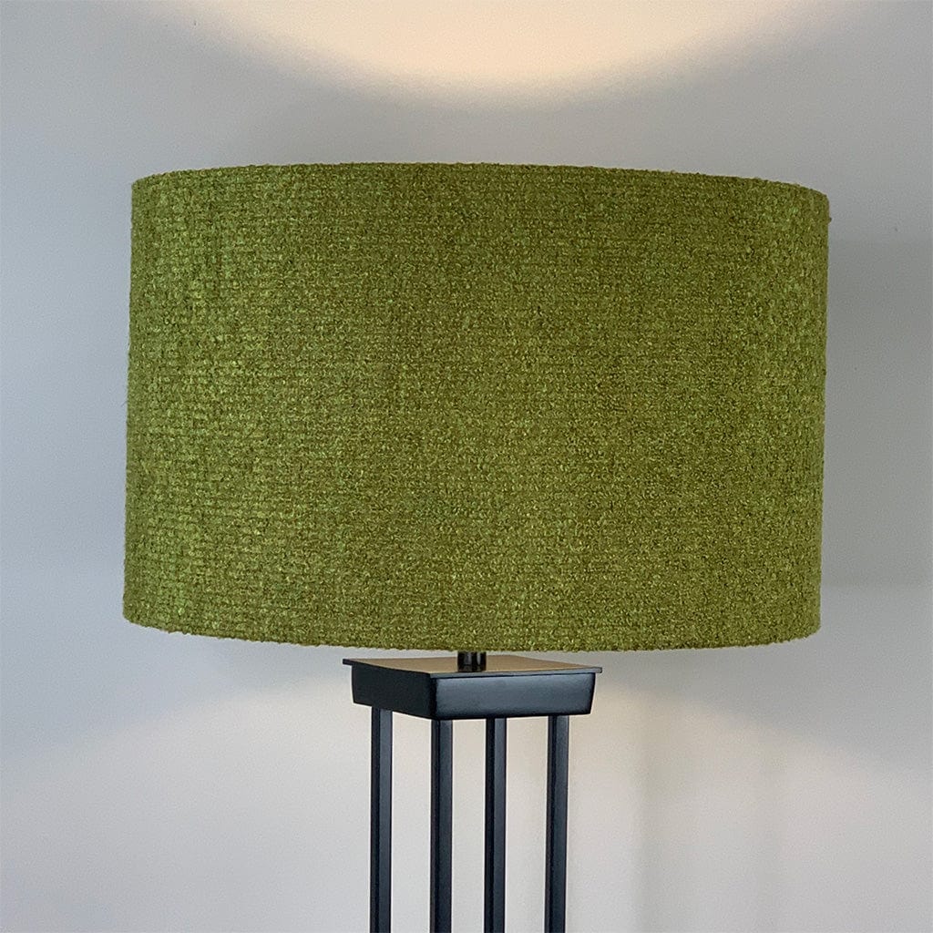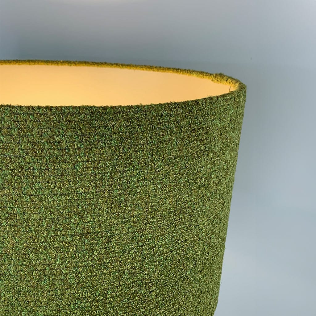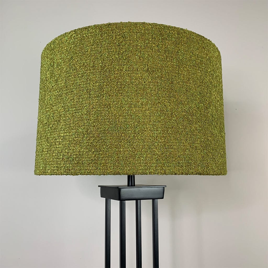 Striking with a pop of textured colour. This bespoke, made to order shade paired with our tall matt black floor lamp creates a striking feature floor lamp. This Ortese Citron Boucle fabric is unique and fun in a bold lime green, a great addition for those with a fearless interior!
