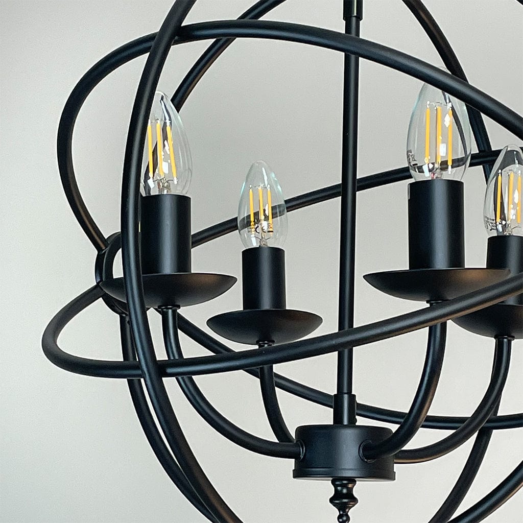 Orion 4 Light Black Spherical Chandelier