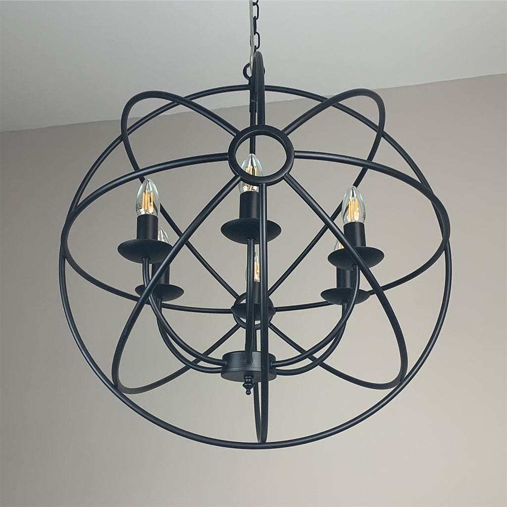 Orion 6 Light Black Spherical Chandelier