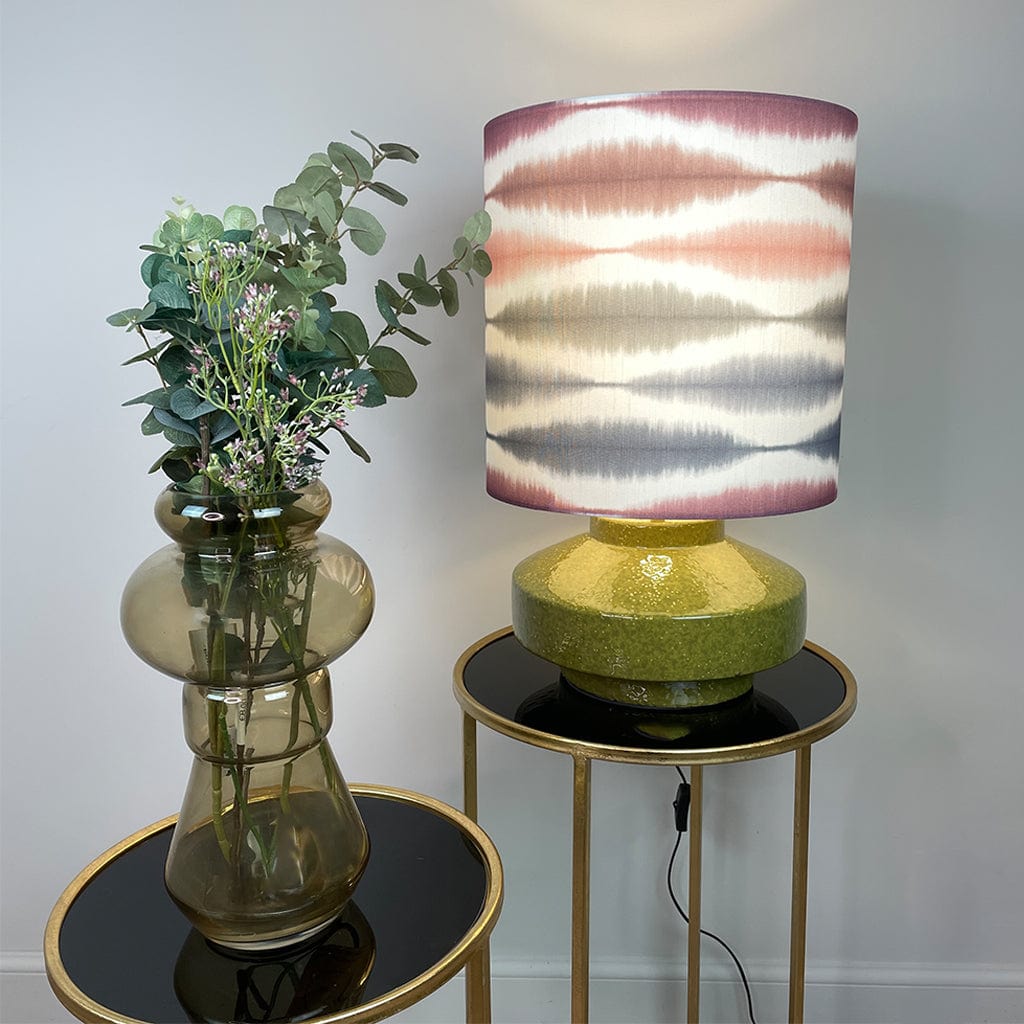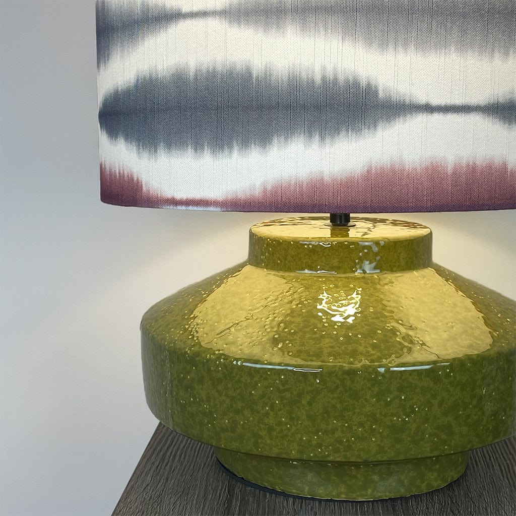 Bring bold, artistic flair into your home with the Pamplona Ceramic Green Table Lamp, expertly paired with our bespoke Usuko Cranberry Rose lampshade. The rich, glazed green ceramic base adds an organic, earthy tone to your space, while its curved form creates a grounding silhouette perfect for console tables, sideboards or bedside settings.