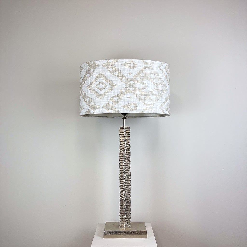 Marrakech Canvas: Our Marrakech Fabric in Canvas is the perfect touch of funk to give any room some pizazz. With a soft linen shade and a neutral sand-coloured ikat style pattern, complemented by a champagne lining, you can add a unique flair to your lamp.