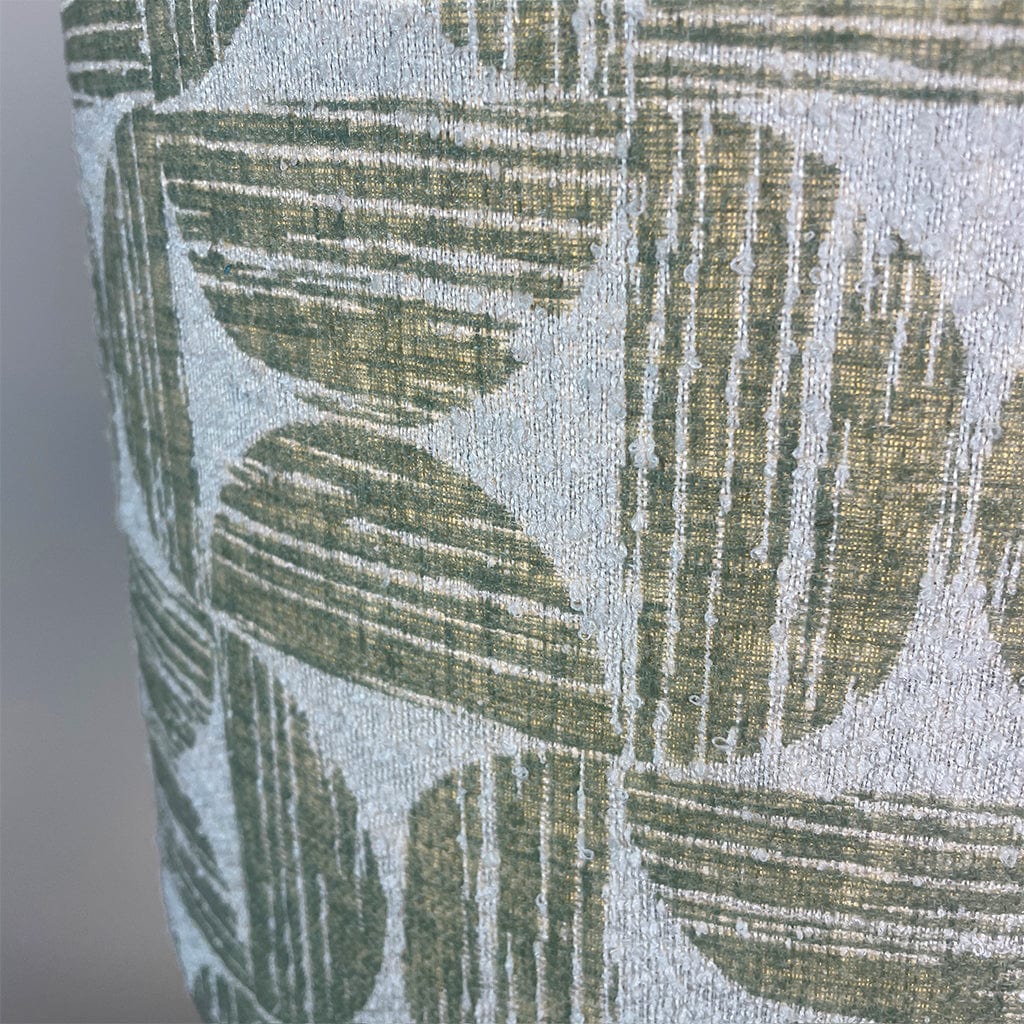 This Rocke Bespoke handcrafted lampshade, made in our studio, is made with Axel Fern, a boucle style fabric with a scandi feel and a white backing to allow the lighter fabric to glow when lit.