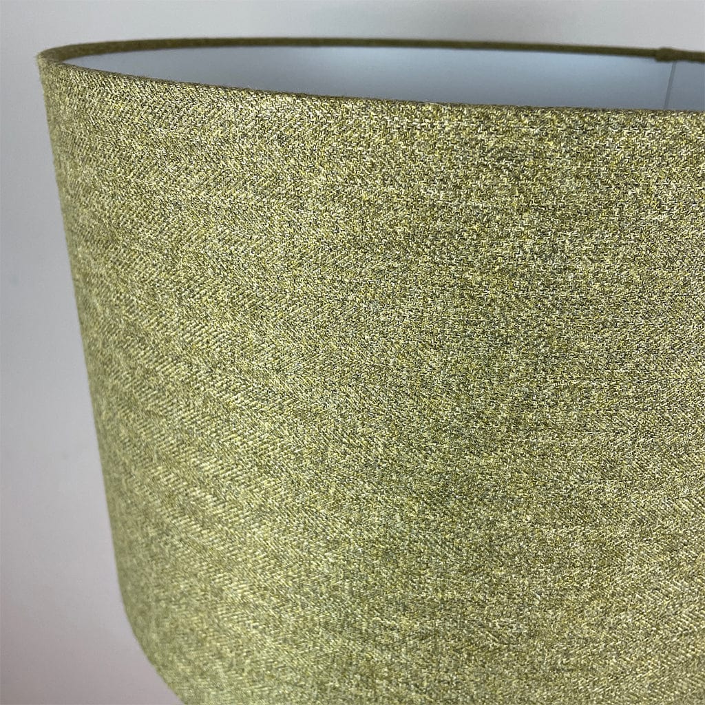 This Rocke Bespoke handcrafted lampshade, made in our studio, is made with textured, tweed-like fabric in an ochre green finish with a white lining.