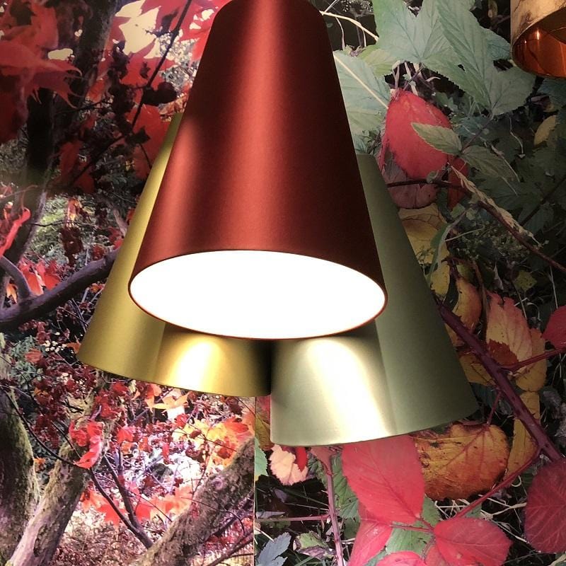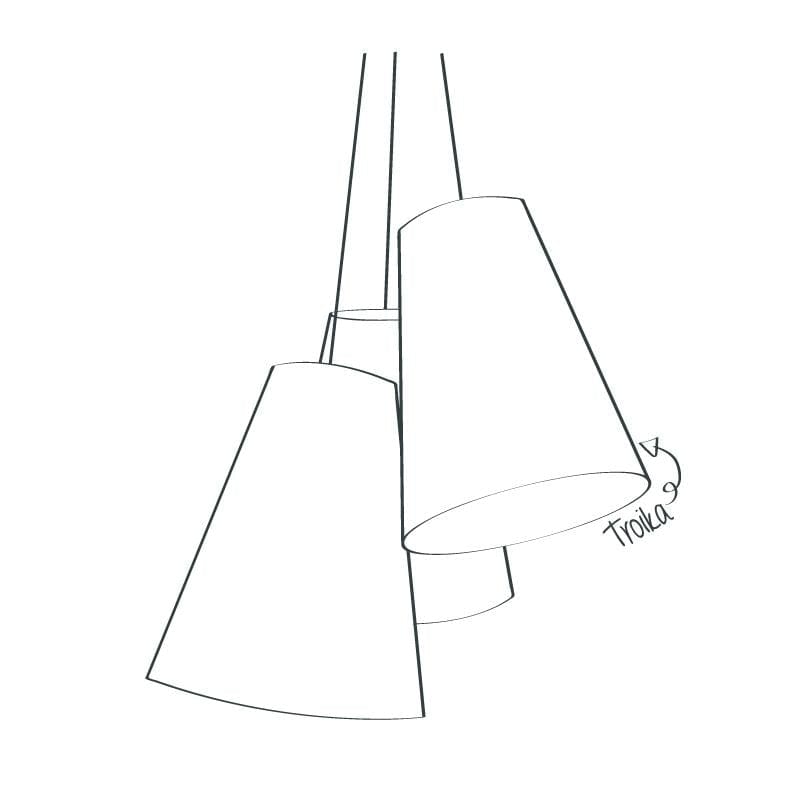 Our Rocke Bespoke studio came up with a redesign of our original Troika in answer to a customer's dilemma: a large statement pendant fitting for a stairwell with a long drop that wasn't metal and glass - so we came up with the larger version of this piece. Three outsize tapered drum shades in coordinating or contrasting colourways which can be hung together at varying heights. This version is on a more domestic scale and can be used as a central pendant fitting to great effect in any room to bring colour and scale into the space and, by careful selection of the fabrics, draw all the elements of the decor together.