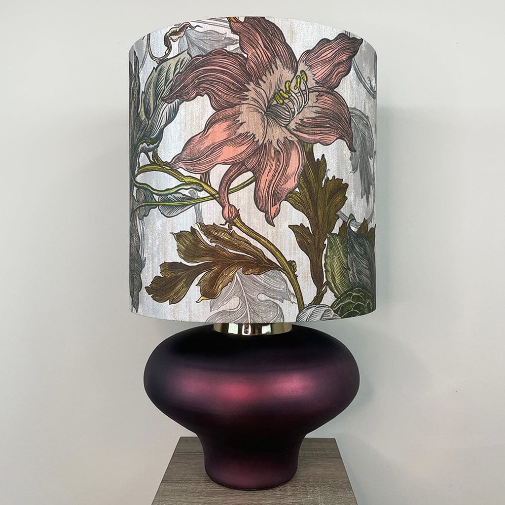 Rugari Enamel Sangria Table Lamp with Timorous Beasties Epic Botanic Beige Peach Lampshade