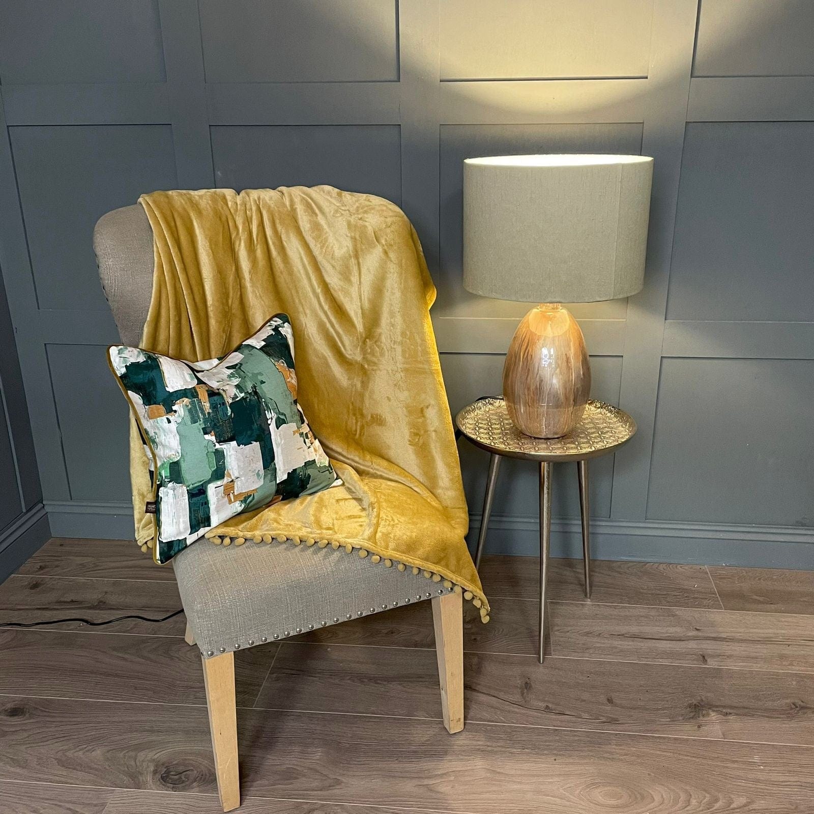 Saffron makes us smile and brings a fantastic exotic, spicy pop of colour. Jazz up your neutrals and add some fluffy texture to your decor with this fleece throw. With its pretty little pom pom braid, it brings a playful vibe when featured as an accent on your sofa or bed. Layer up with some of our scatter cushions for maximum comfort and style.
