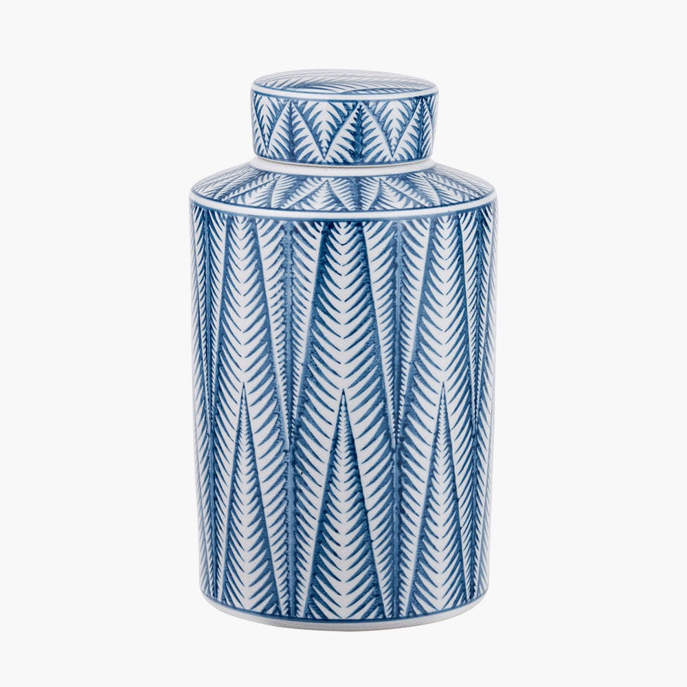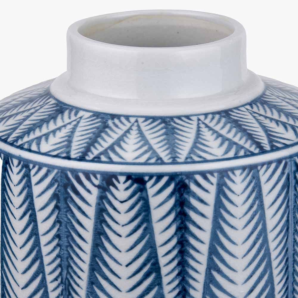 Samara Blue & White Ceramic Aztec Design Lidded Ginger Jar