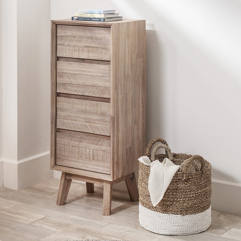 Sand Wash Acacia Wood 4 Drawer Tall Boy