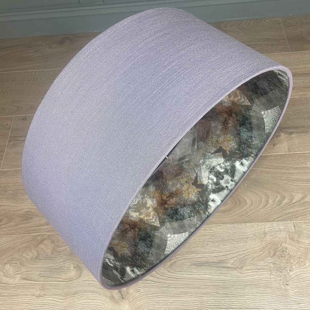 Saxon Violet Pendant Shade with Mairi Helena Scottish Flora Grey Thistle Wallpaper Lining