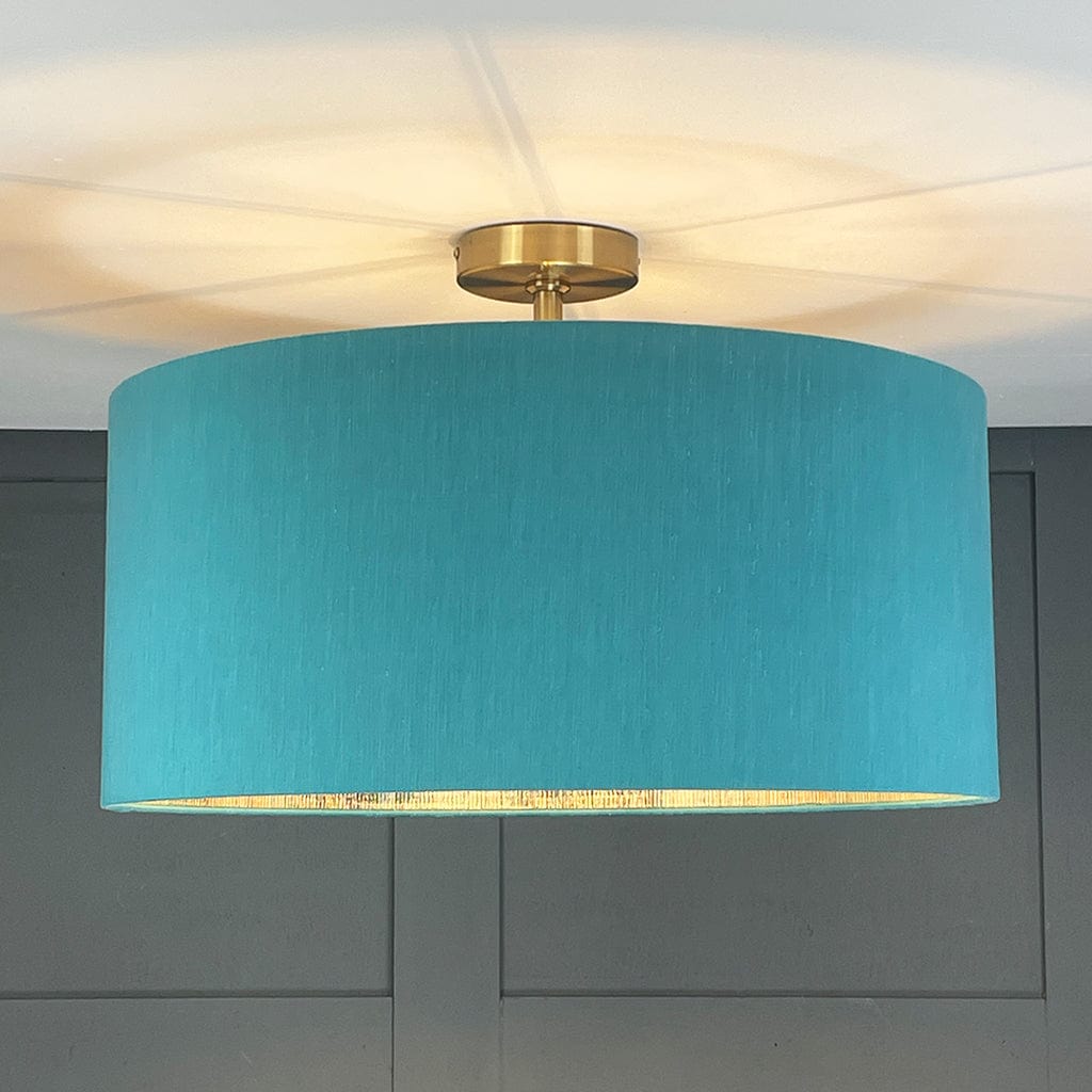 Electrify your shade to your desired height by installing one of our pendant light fittings, available in a variety of drops and metal finishes. Paired here with our semi flush ceiling rod in antique brass; other size options available below.