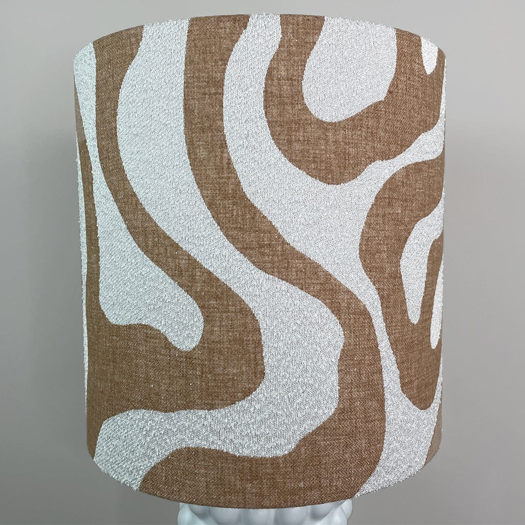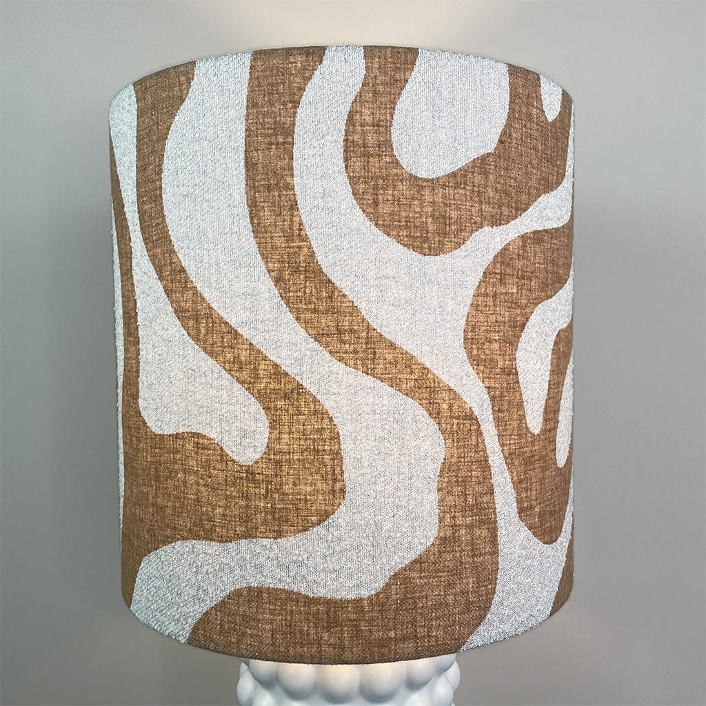 Add a touch of sophistication to your home with this stylish ceramic table lamp base, featuring a twist of Scandinavian influence. The Rocke custom shade in Sigrid Birch fabric complements the sand tones and textured boucle for a perfect pairing. We've lined this shade with a frosted lining to allow the light to shine through and the fabric to really go, elevating the warmth in your home.