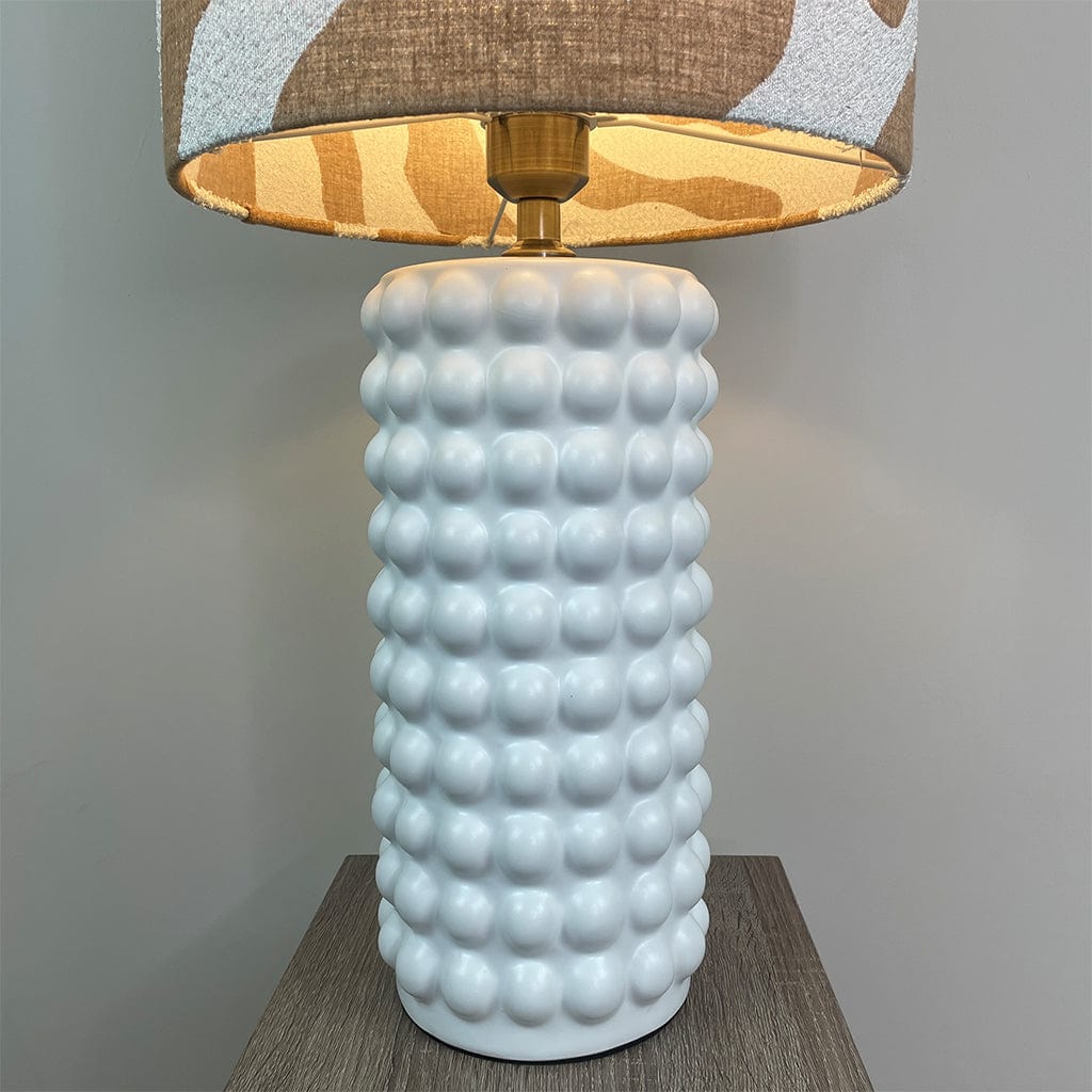 Sohan White Bobble Table Lamp with Sigrid Sandstone Lampshade