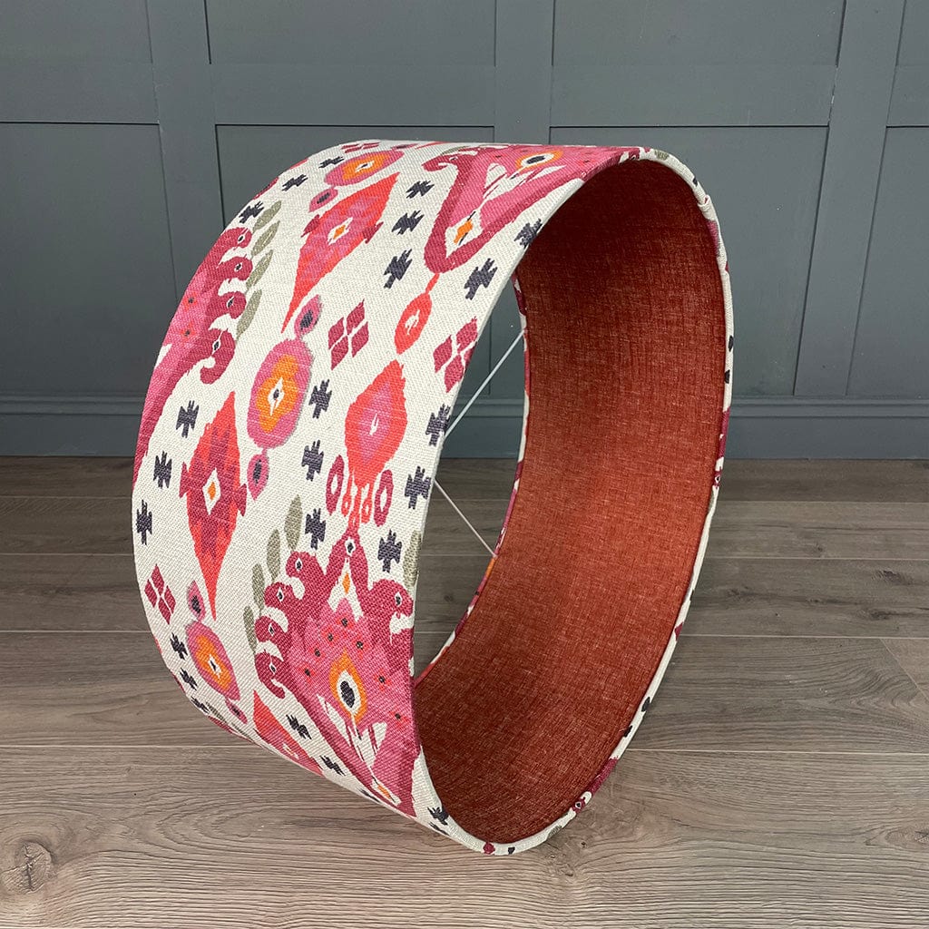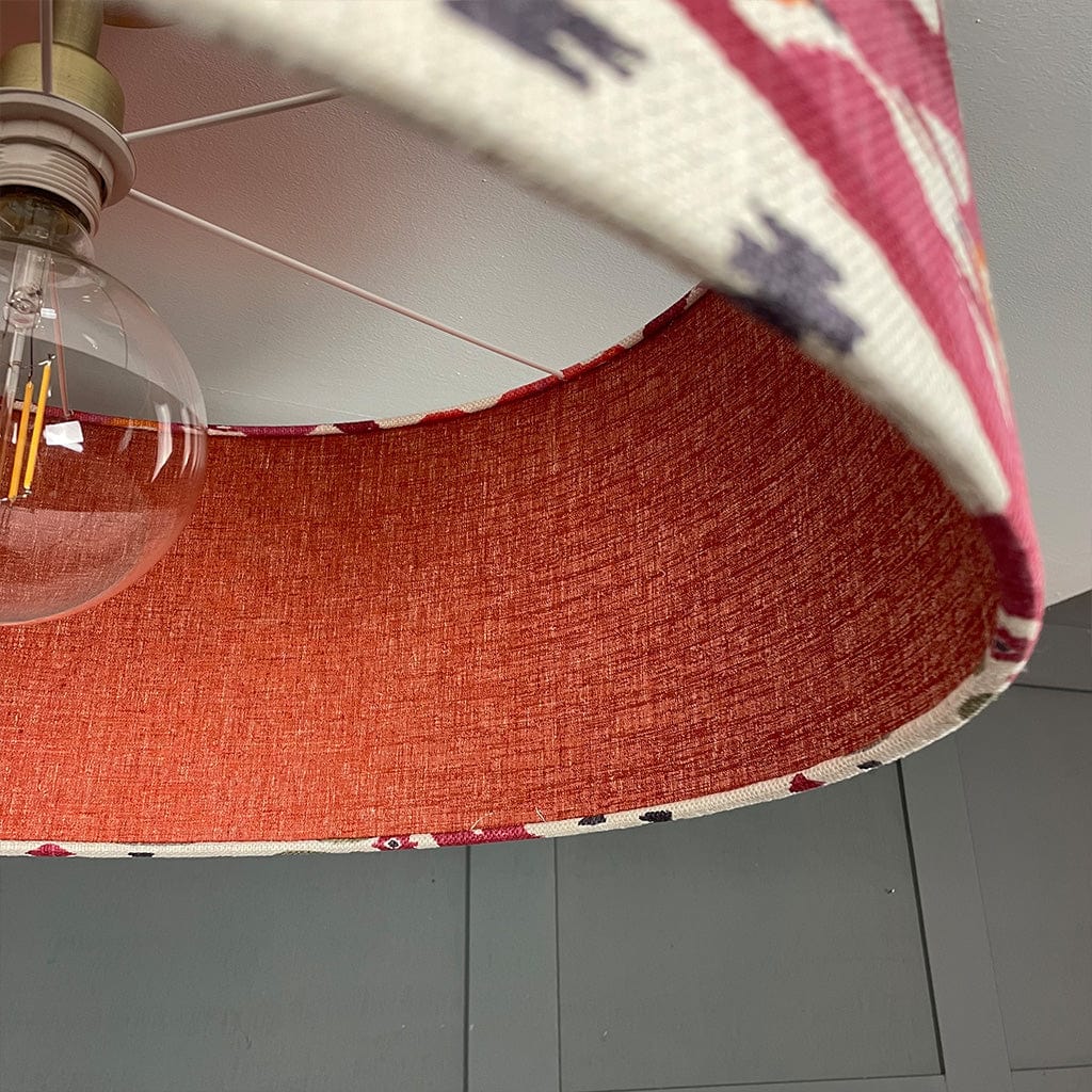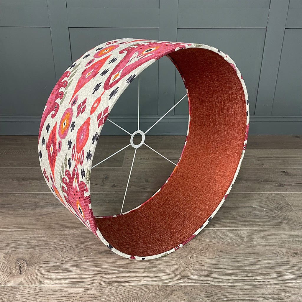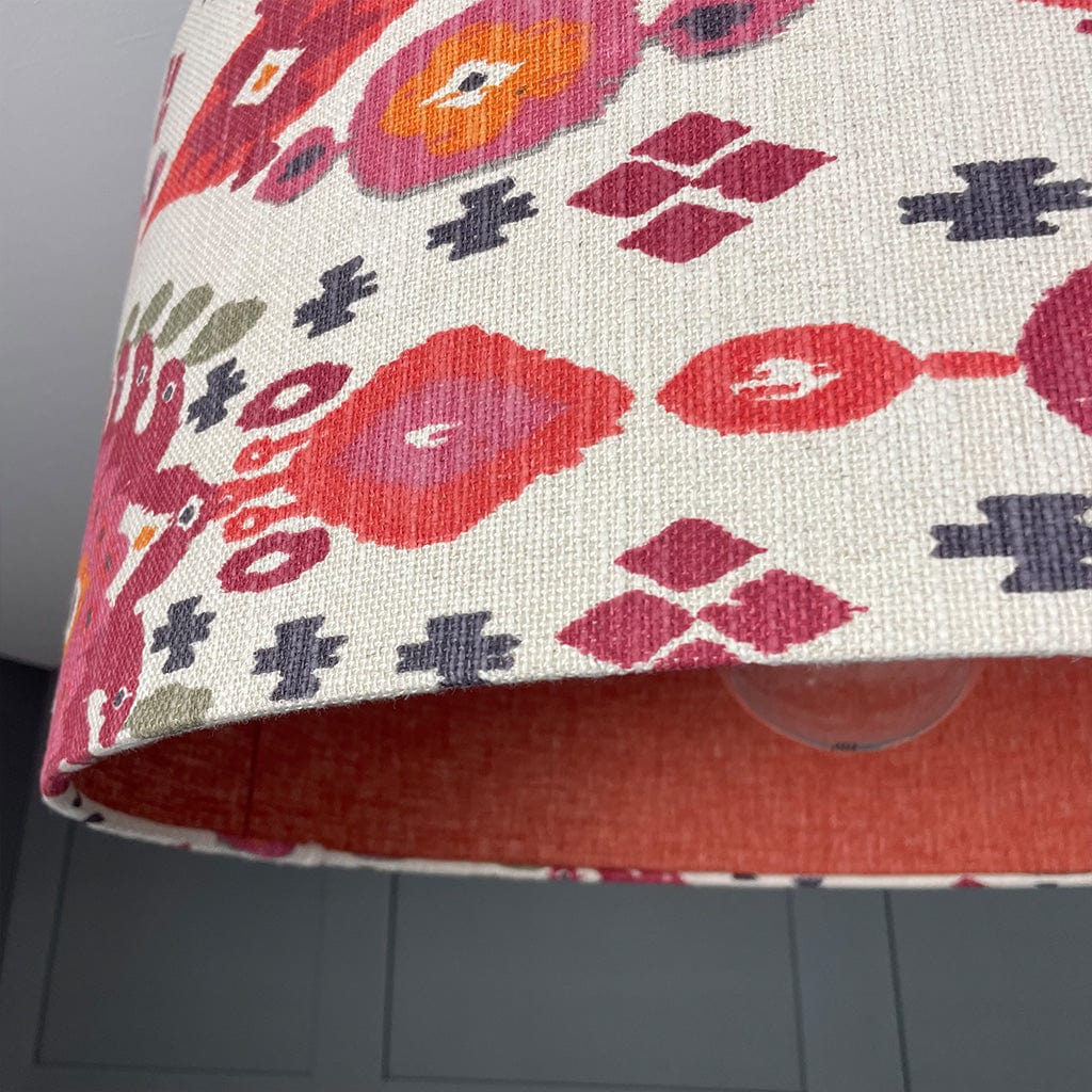 This Boho Begonia handwoven Ikat linen is the brightest pop of funky colour you could bring into your home. This shade is bursting with warmth and joy through the means of bold pinks, deep reds and blush oranges, which we have matched with the perfect deep red spice lining. A perfectly boho statement piece for any home.