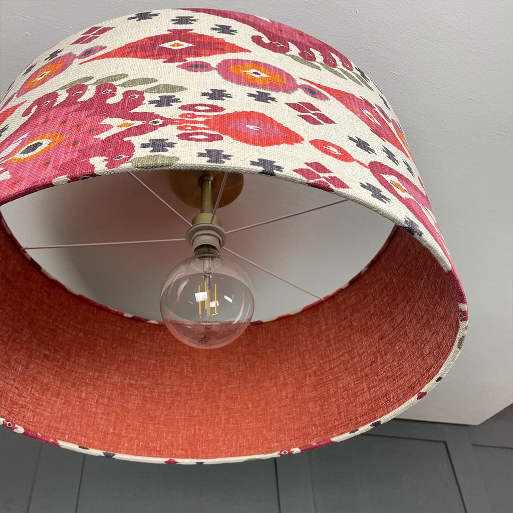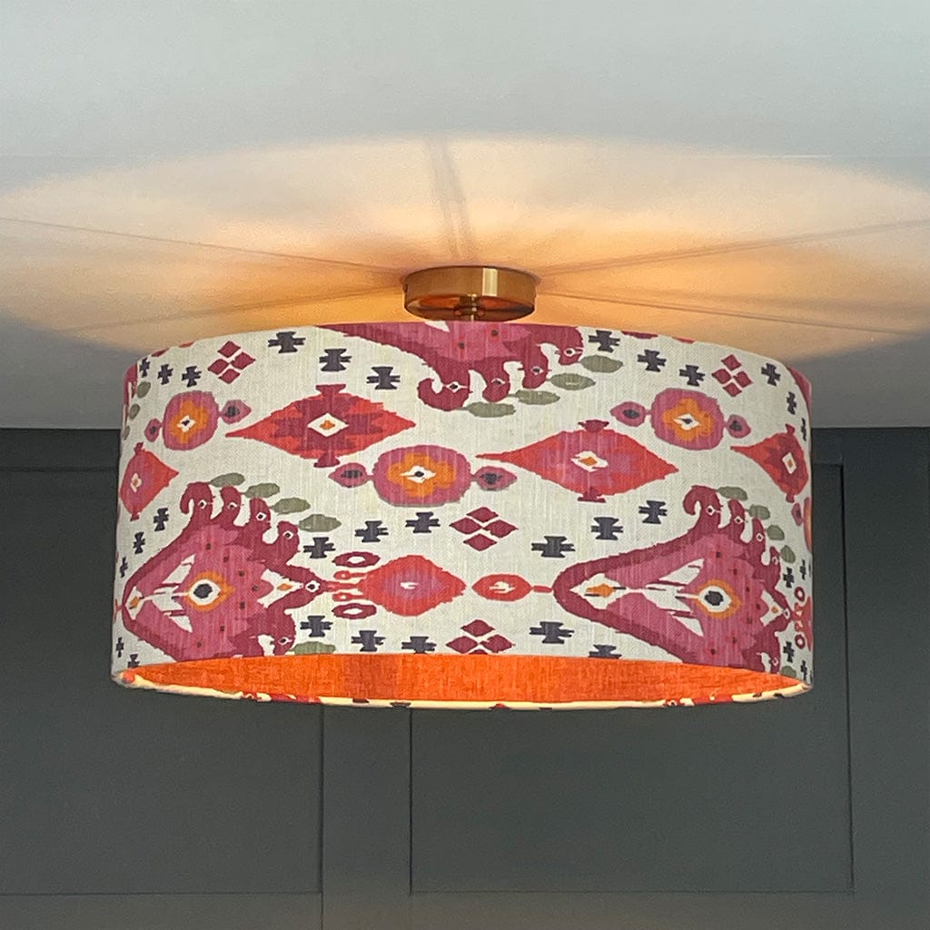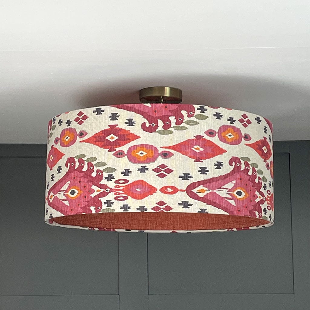 Electrify your shade to your desired height by installing one of our pendant light fittings, available in a variety of drops and metal finishes. Paired here with our semi flush ceiling rod in antique brass; other size options available below.