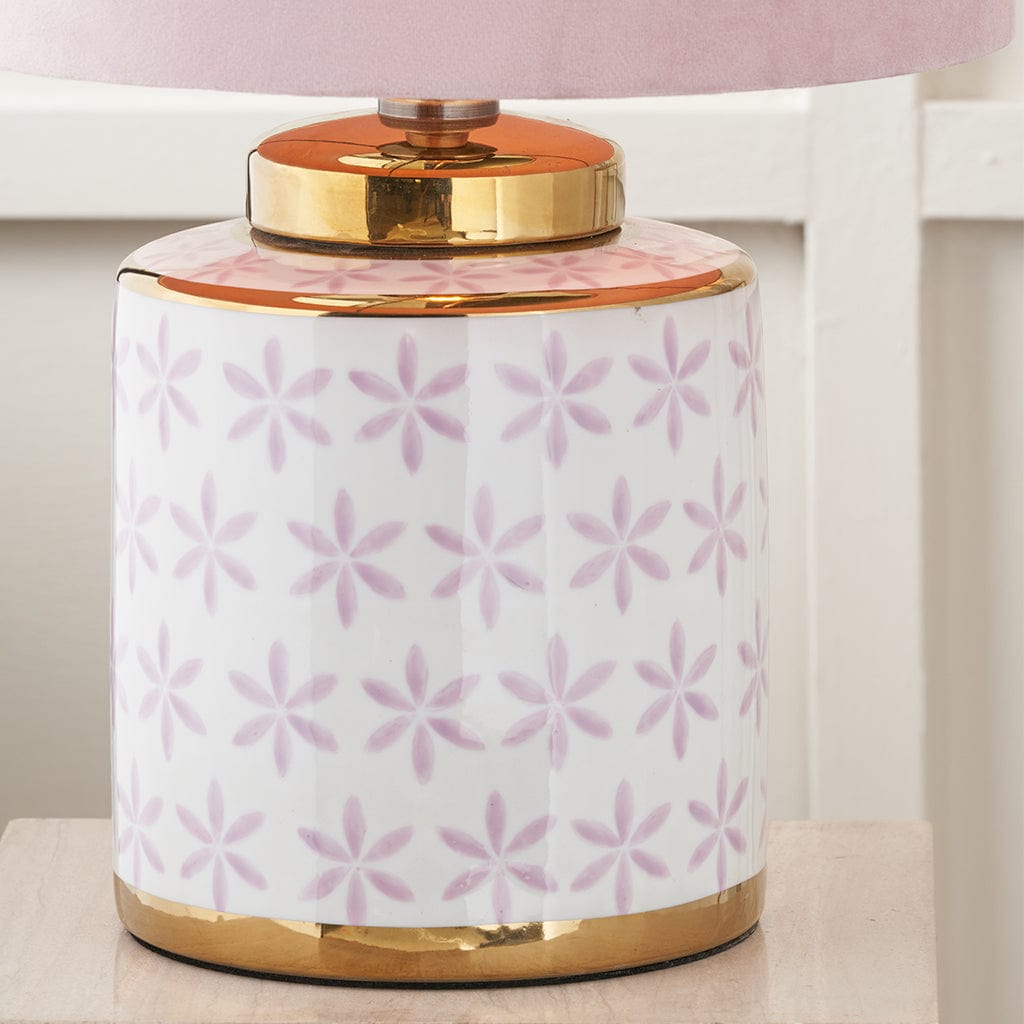 The luxurious gold and soft pink tones of our ceramic base, Thea, are truly striking. With a striking repeat floral leaf design, this lamp makes a sophisticated statement and adds a touch of colour and pattern to any room. Enhance the look by pairing it with one of our cylindrical lampshades.