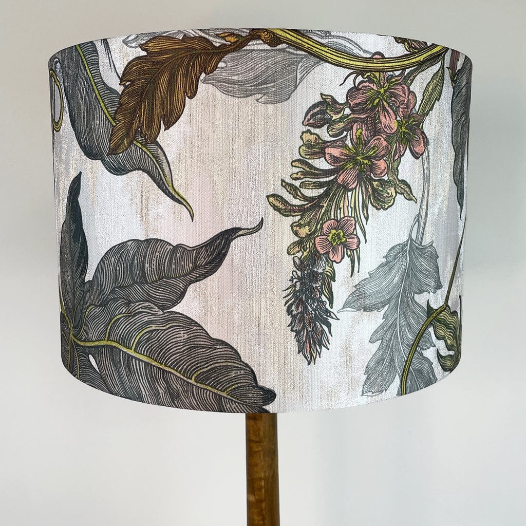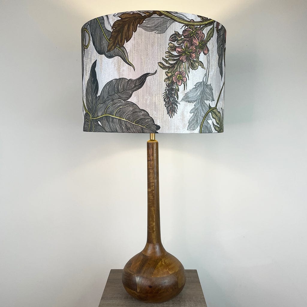 Designed with balance and proportion in mind, the Toma lamp base offers the perfect foundation for a statement shade. Crafted from solid mango wood, this tall-neck table lamp showcases an elegant organic shape with a rich, hand-finished texture. We’ve paired it with a Rocke Bespoke drum lampshade in Timorous Beasties Epic Botanic Beige Peach—a luxurious jacquard fabric adorned with oversized floral motifs in warm ochres, soft peaches, and neutral beige tones. The botanical pattern complements the natural texture and tone of the wood, creating a harmonious blend of artisanal craftsmanship and sophisticated design—ideal for adding warmth and personality to your space.