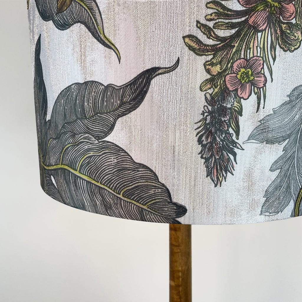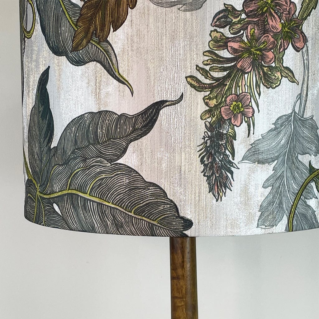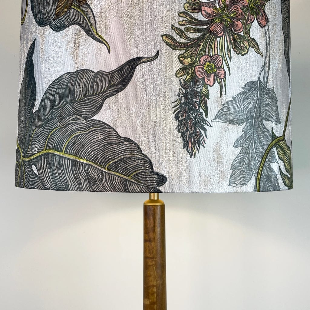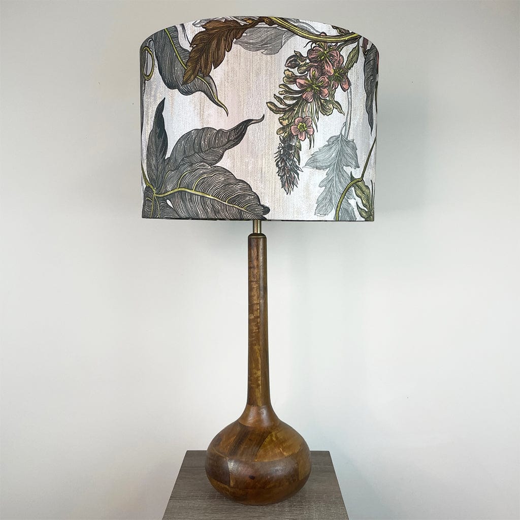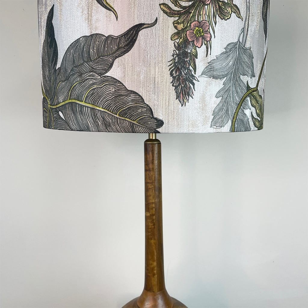 Toma Oiled Wood Tall Neck Table Lamp with Timorous Beasties Epic Botanic Beige Peach