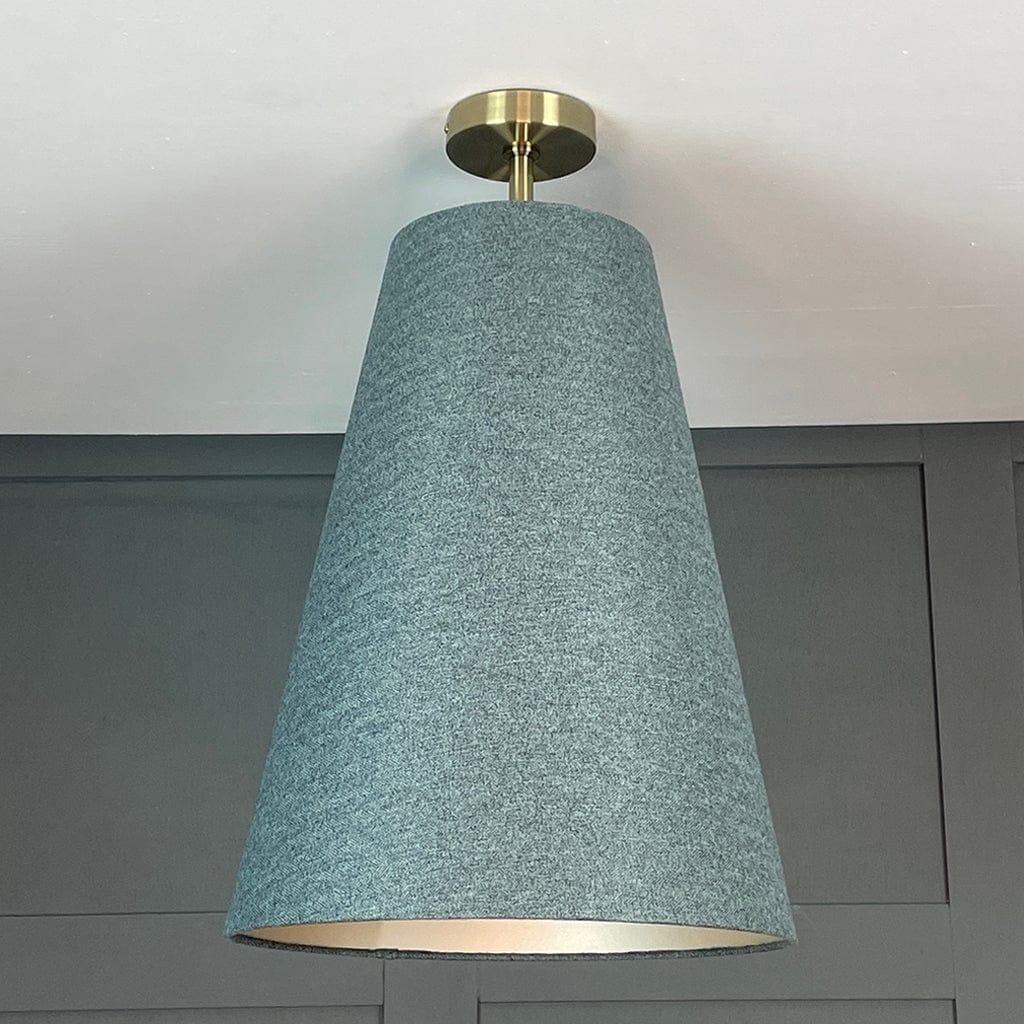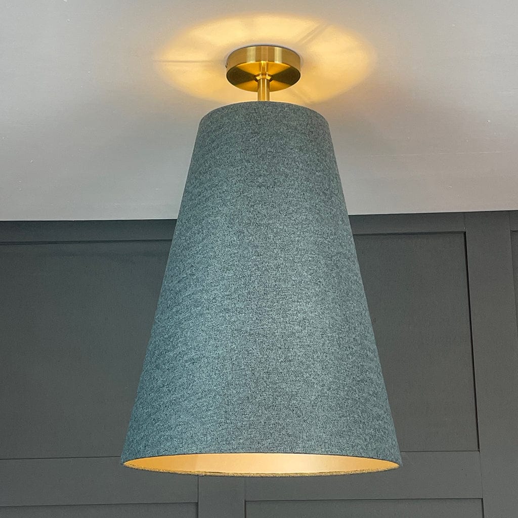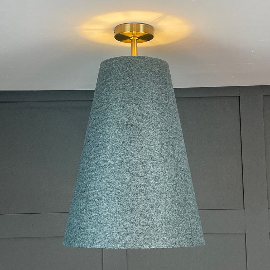 Electrify your shade to your desired height by installing one of our pendant light fittings, available in a variety of drops and metal finishes. Paired here with our semi flush ceiling rod in matt champagne; other size options available below.