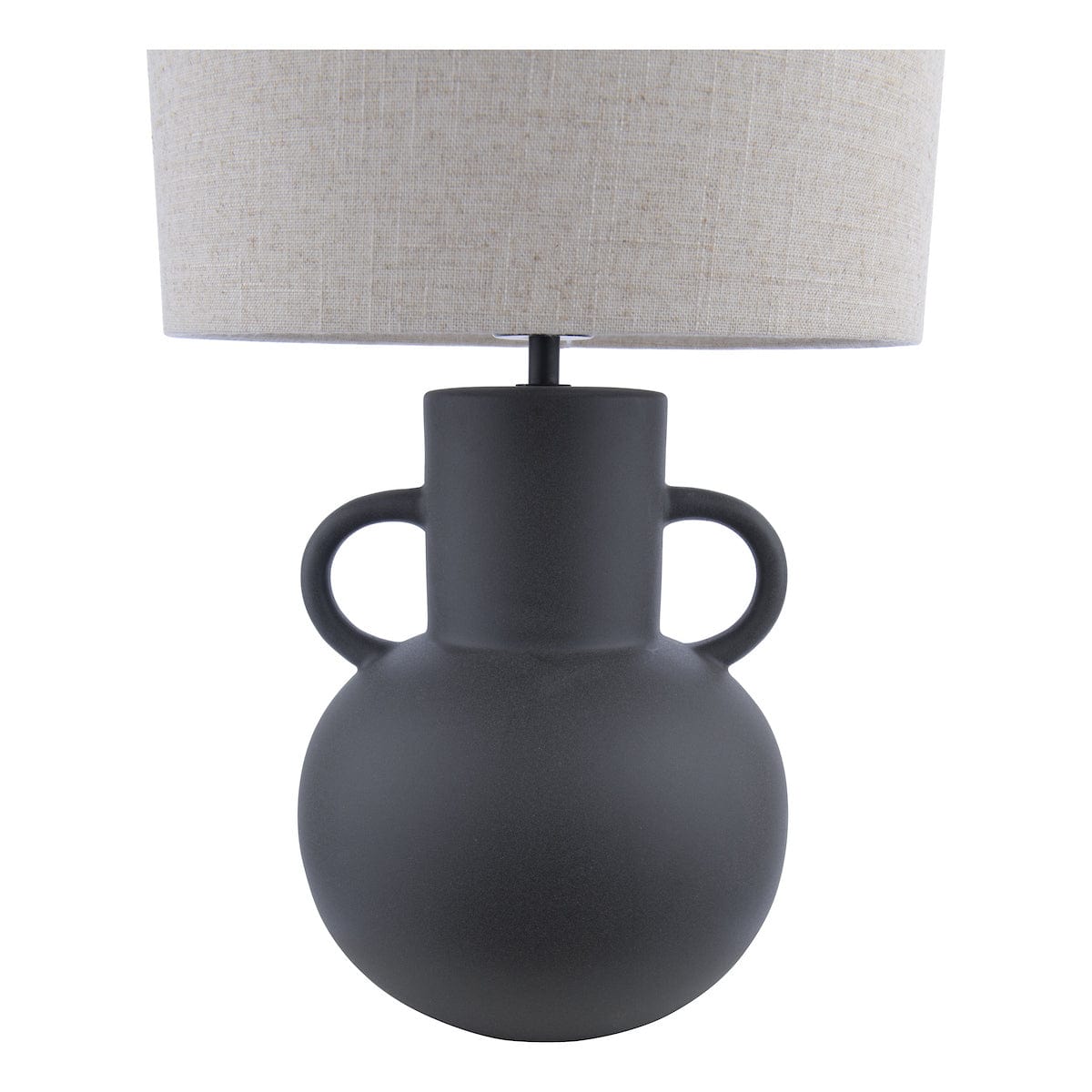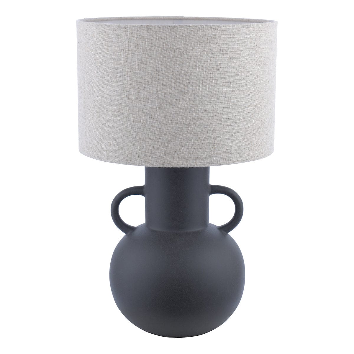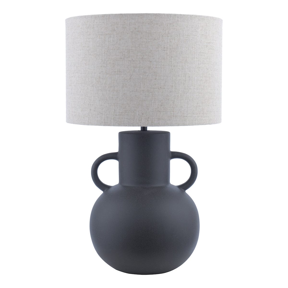 Experience the elegance of the Urn Ceramic Table Lamp Black, a modern reimagining of traditional Greek urns. This terracotta lamp boasts a sophisticated black finish, meticulously crafted for a tactile charm. Its sleek and minimalist design is completed with a contrasting ivory shade, perfectly balancing dramatic flair with refined sophistication.