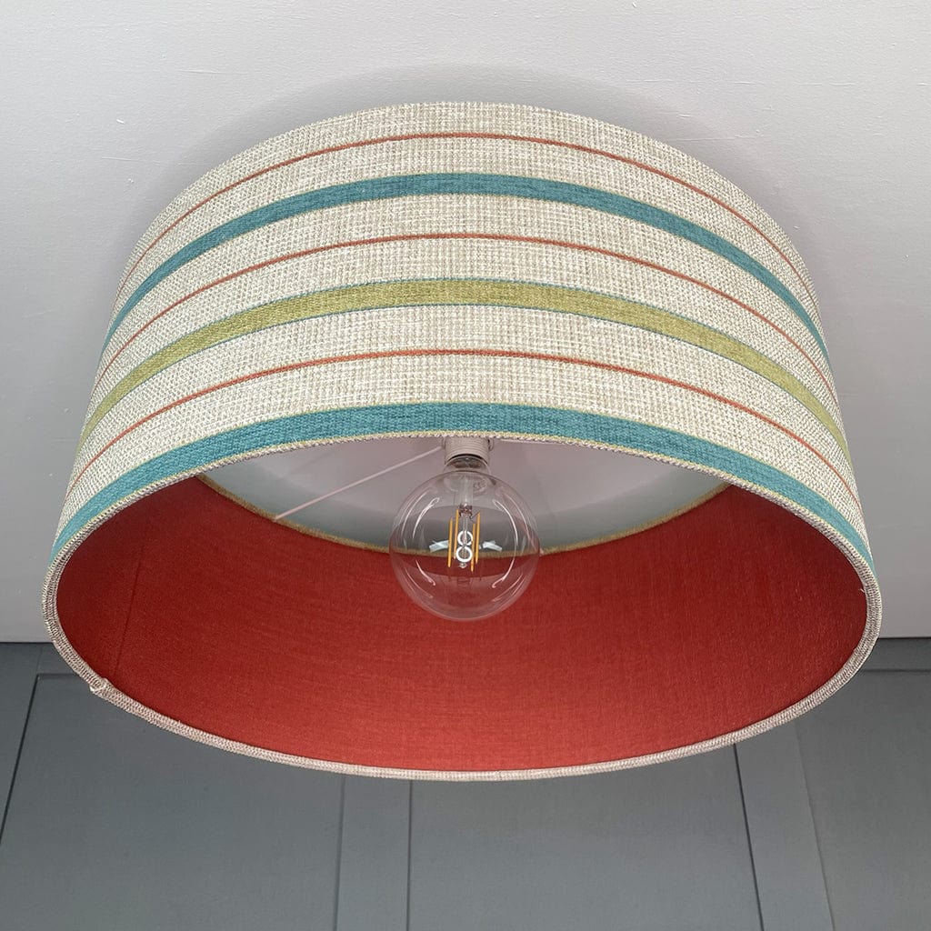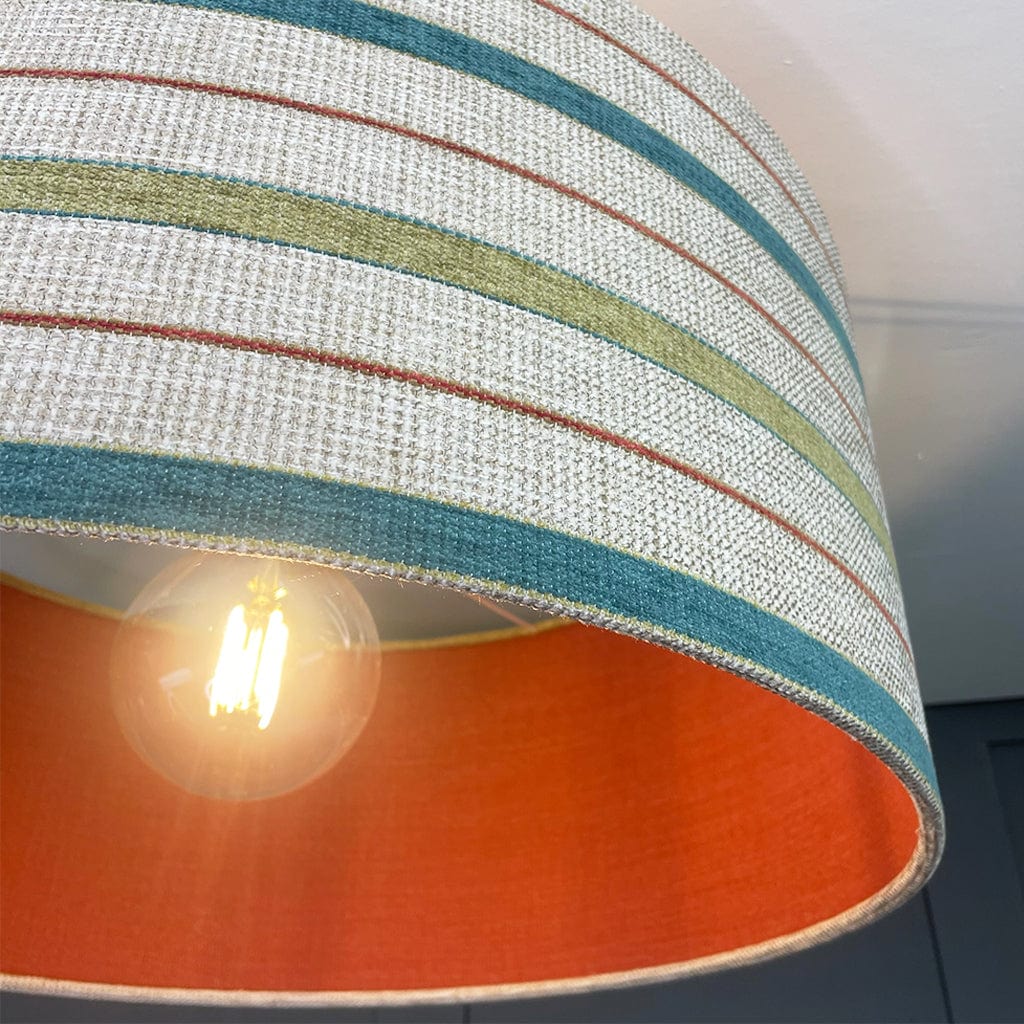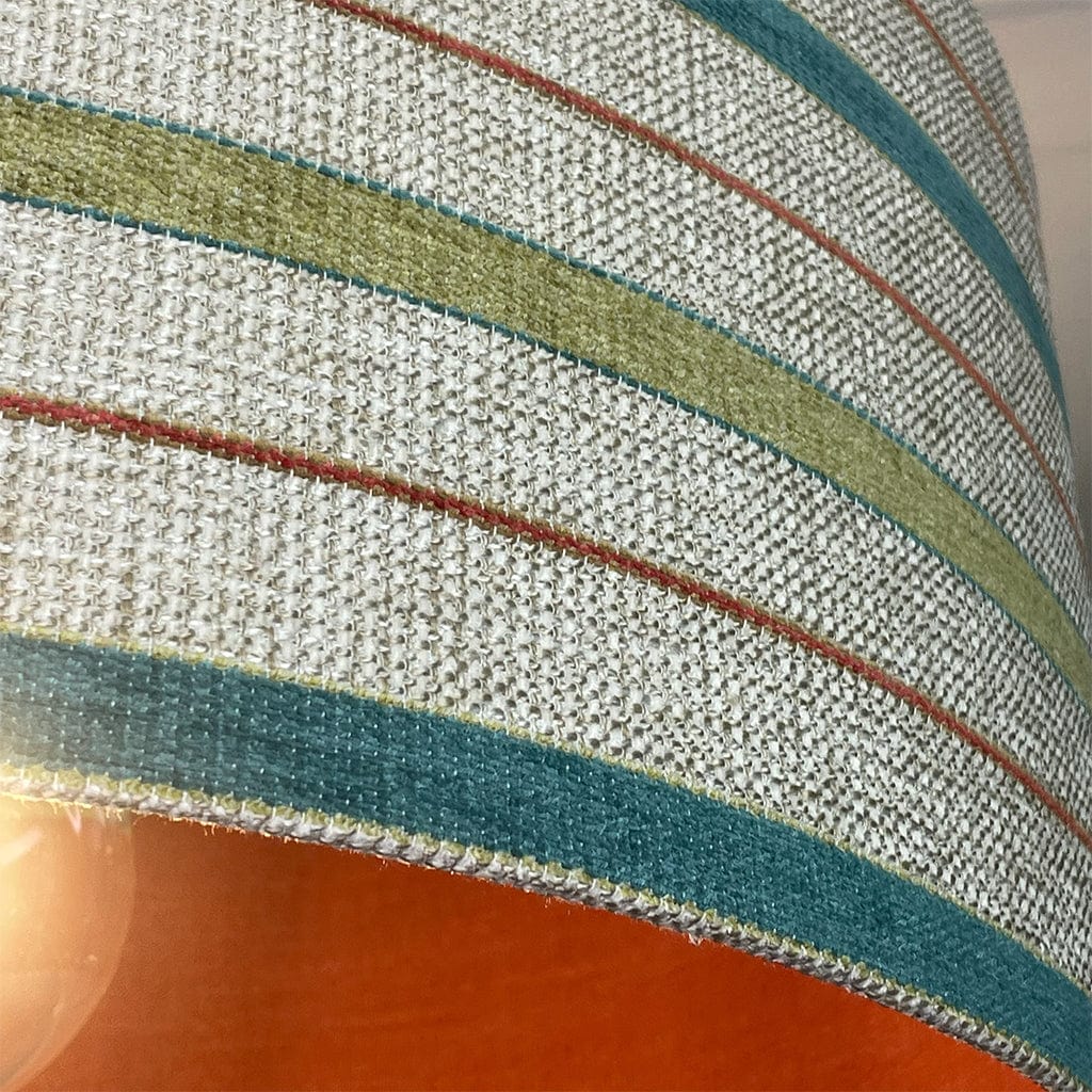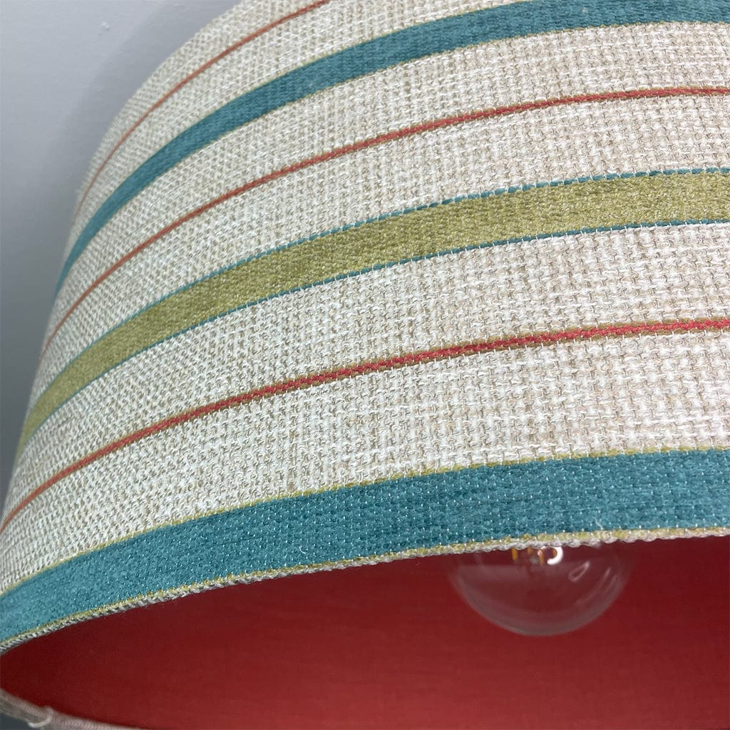 This shallow pendant shade is a bright and bold touch to a home. Westbourne Laurel is a woven linen that honours the arts & crafts movement, featuring coordinated stripes in varying tones that really strike up a conversation. The on-trend hues within this fabric are completed with the linen lining in Saxon Chilli to create a truly coordinated finish.