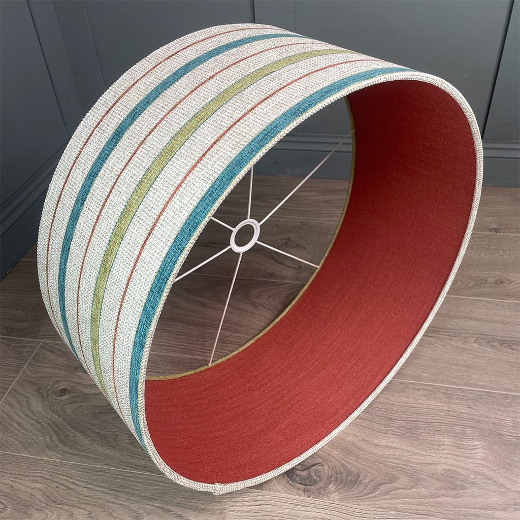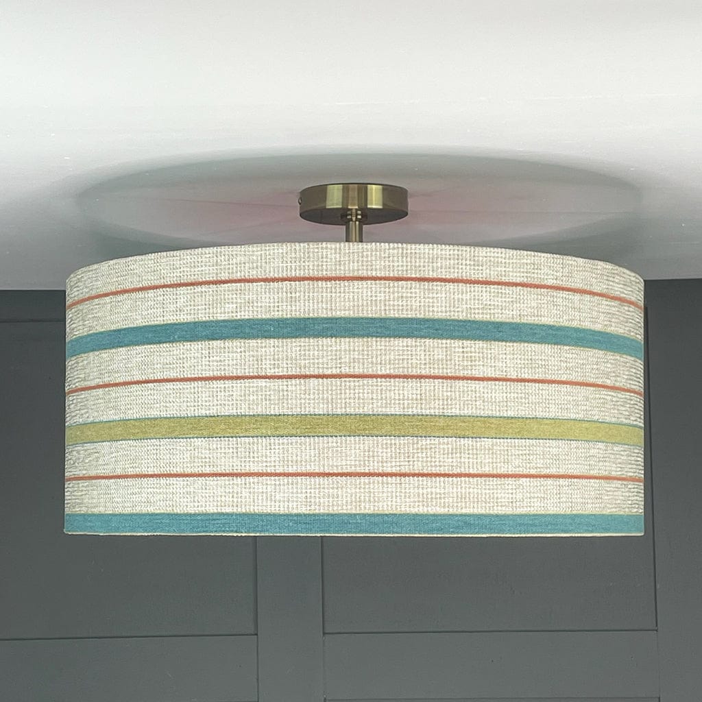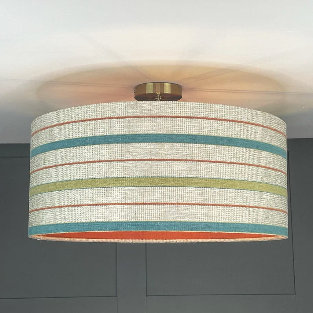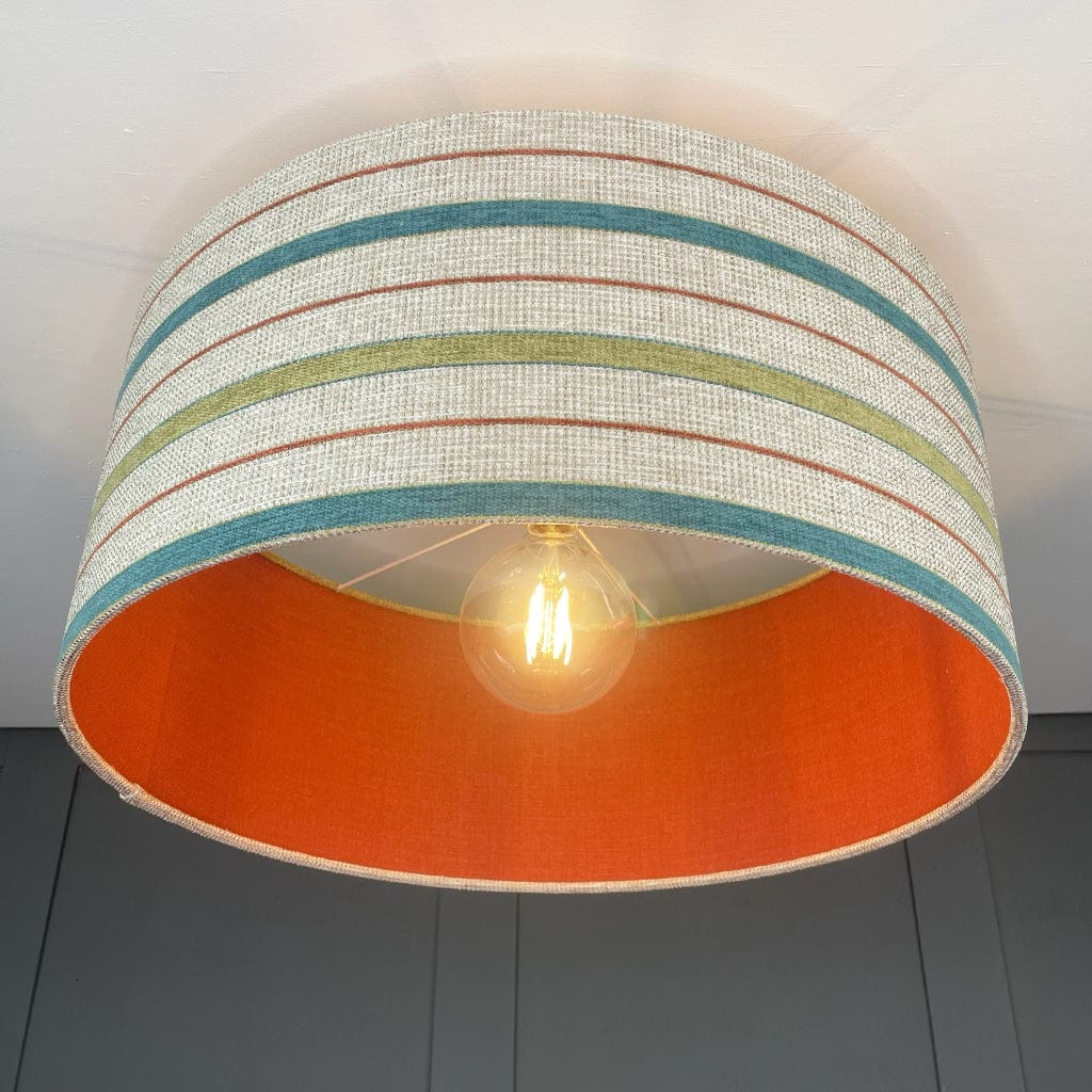 This shallow pendant shade is a bright and bold touch to a home. Westbourne Laurel is a woven linen that honours the arts & crafts movement, featuring coordinated stripes in varying tones that really strike up a conversation. The on-trend hues within this fabric are completed with the linen lining in Saxon Chilli to create a truly coordinated finish.