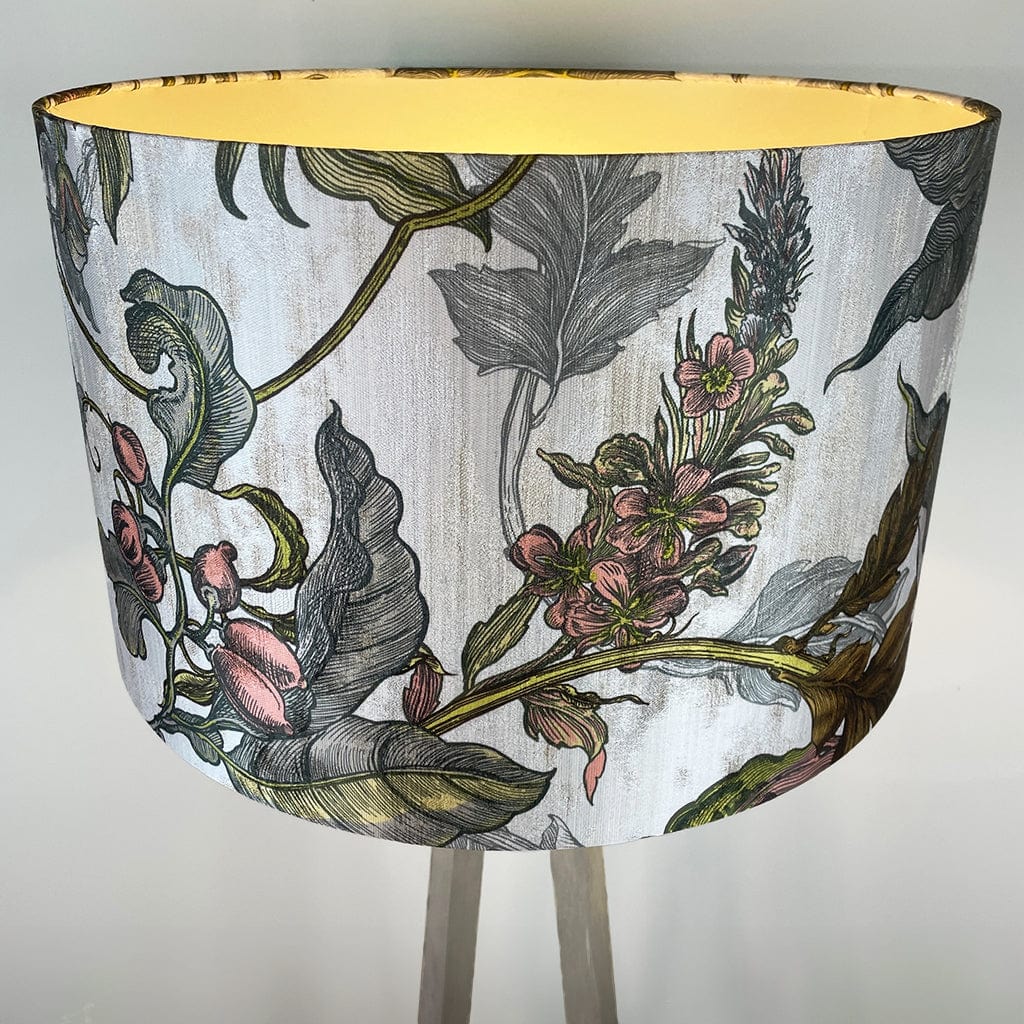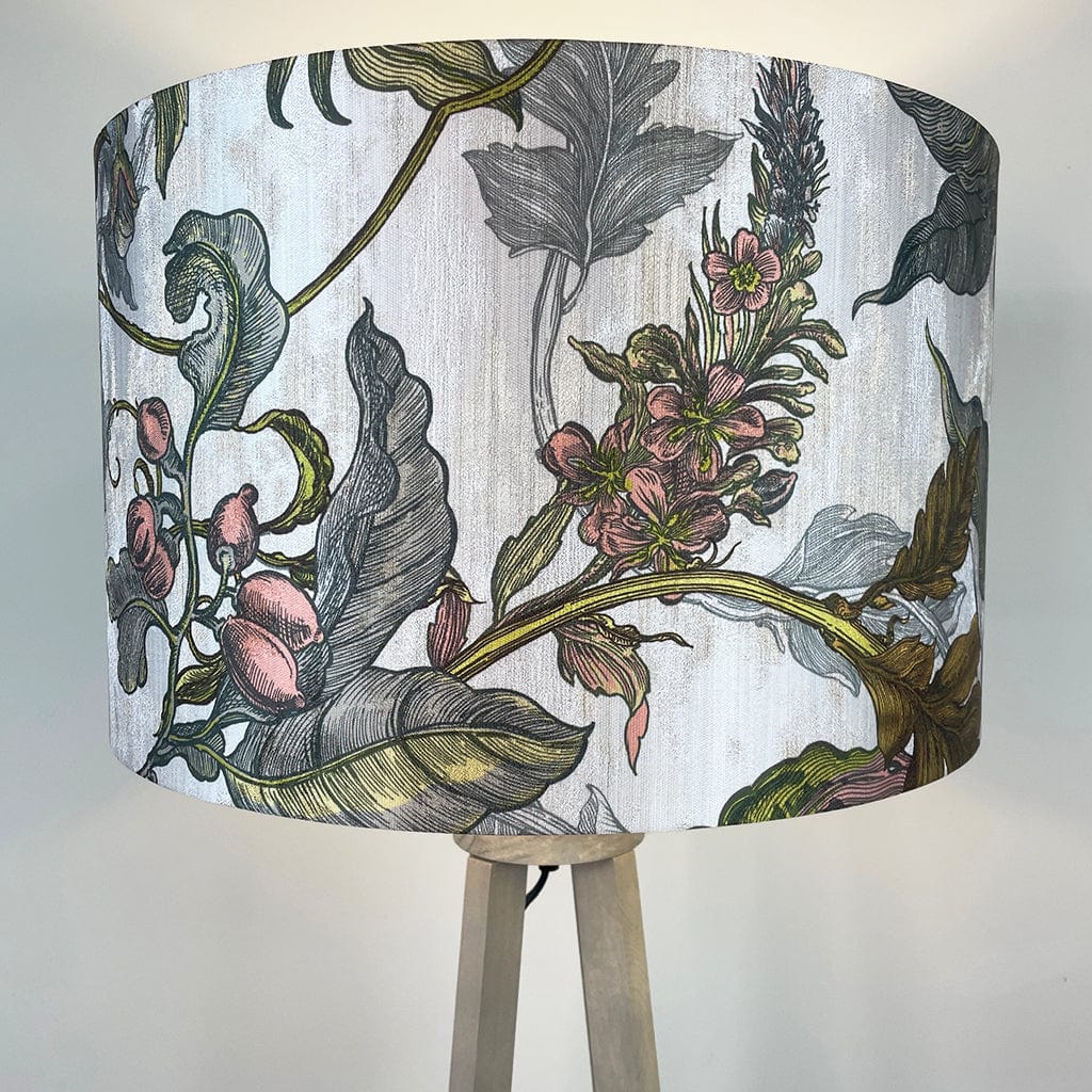 Paired beautifully with our bespoke, handcrafted lampshade in the Timorous Beasties Epic Botanic Beige Peach fabric, this combination brings botanical luxury into your space. The jacquard shade features oversized floral motifs in warm ochres, soft peaches, and natural beige tones, woven into a bold and rhythmic pattern with a subtle sheen, perfectly complemented by a champagne lining that preserves the intricate design whether lit or unlit.